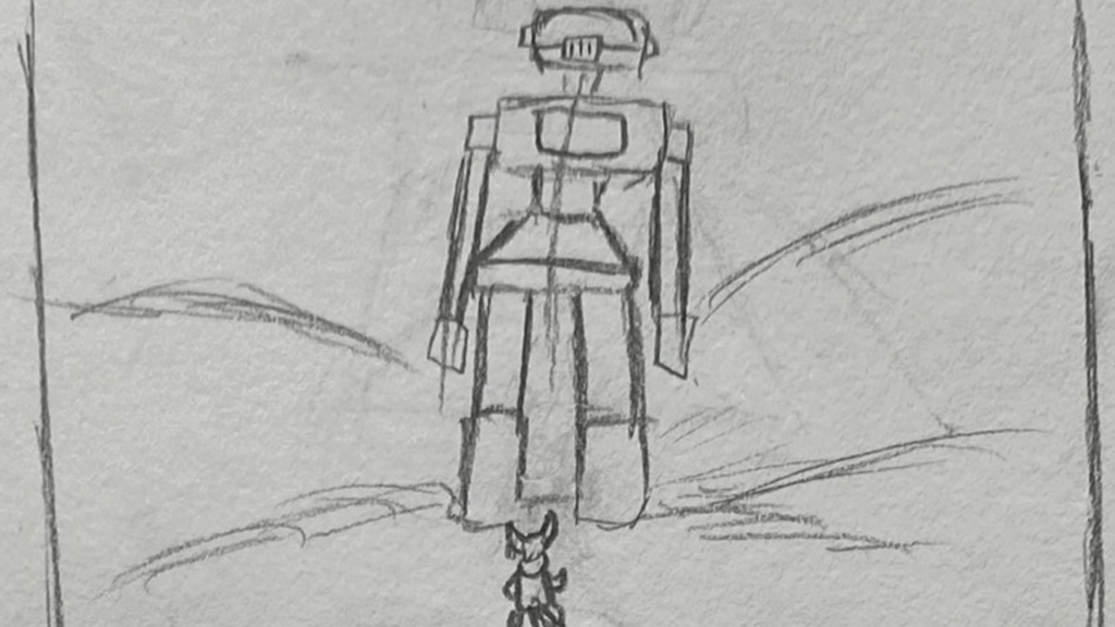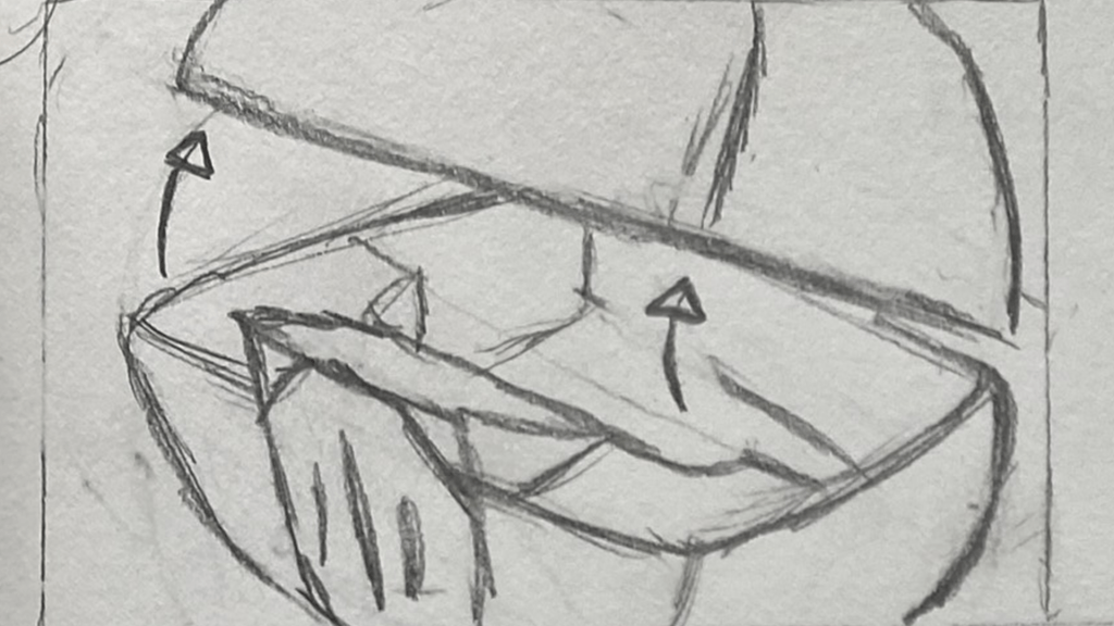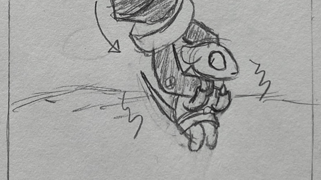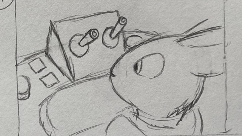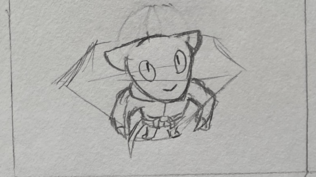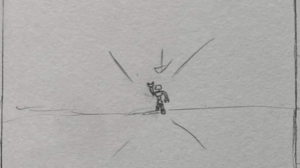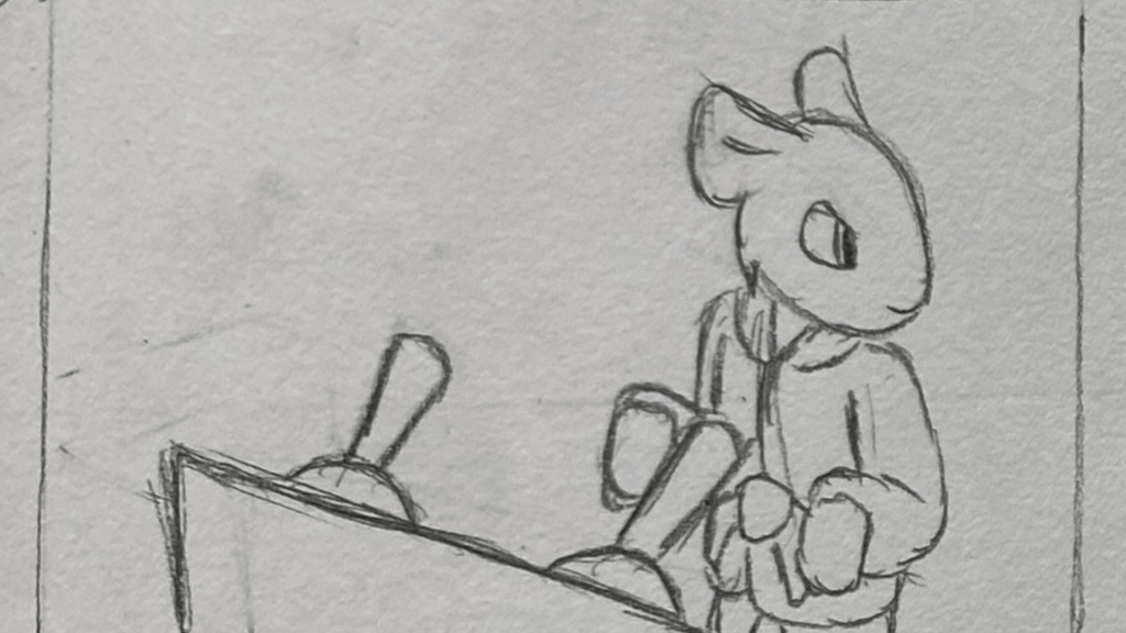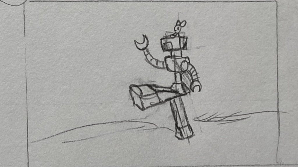 A short animated sequence I planned out, pitched, storyboarded, animated, and edited on paper for. A total of 114 frames were used for the finished shot.